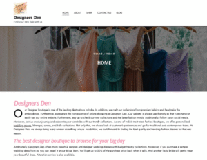 This is the homepage of Designers Den, a bridal fashion website I created as part of my digital marketing academic training. The goal was to simulate a real-world online store experience with user-friendly navigation, visual appeal, and brand-focused messaging. I wrote all the homepage content, customized the theme using WordPress, and styled it to reflect elegance, femininity, and ease of use.